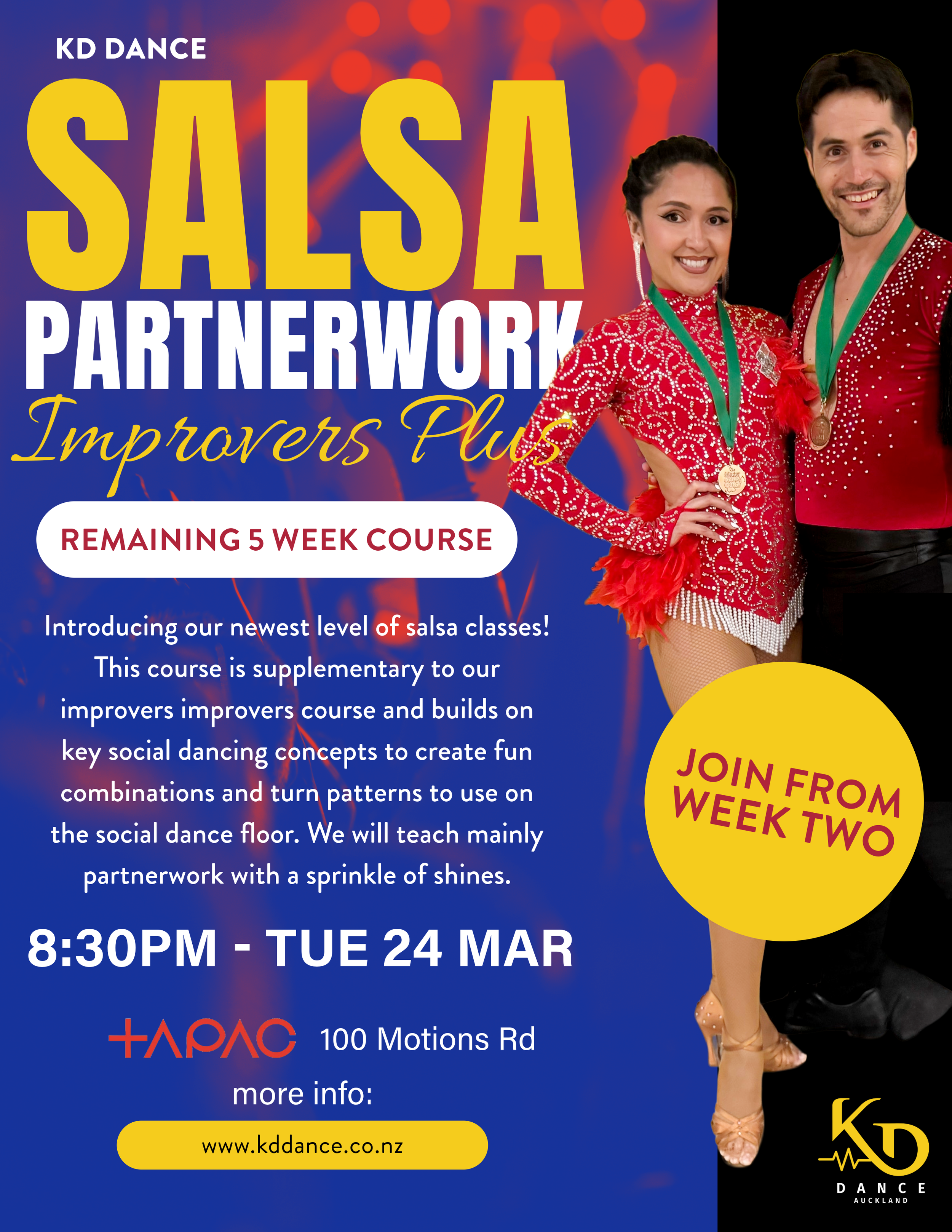 Join our salsa improvers plus course from week two - 8:30pm Tuesday the 24th of March
