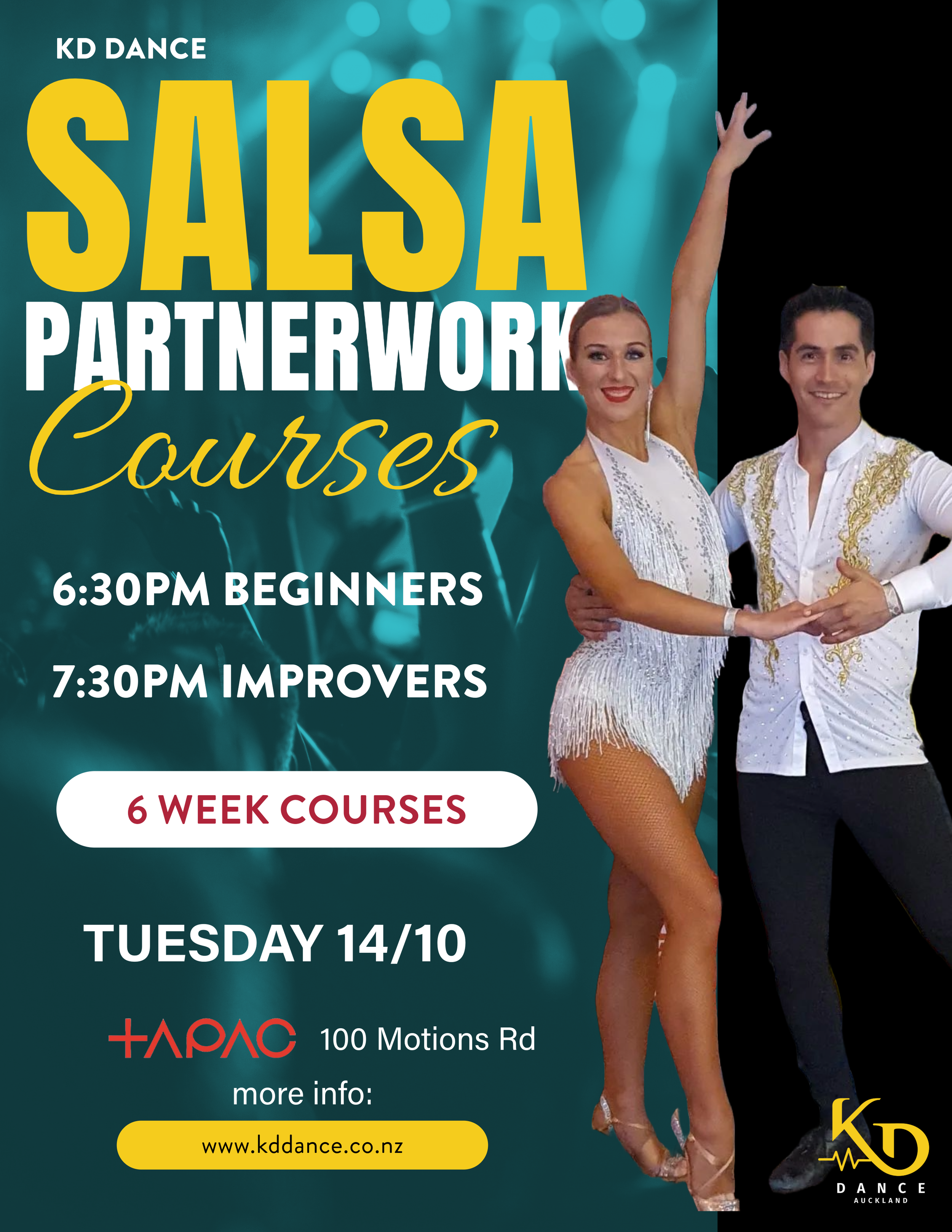 Final term - Salsa Partnerwork Courses Tuesday, 14 October 2025 6:30โฏpm 8:30โฏpm TAPAC 100 Motions Road Auckland, Auckland, 1022 New Zealand (map) Google Calendar ICS Last chance to learn salsa with us for 2025!Come and learn Salsa On2 (Mambo) from the foundations. We have two different levels to choose from, beginners to improvers each with a structured curriculum to help you learn at a steady rate. Sign up here