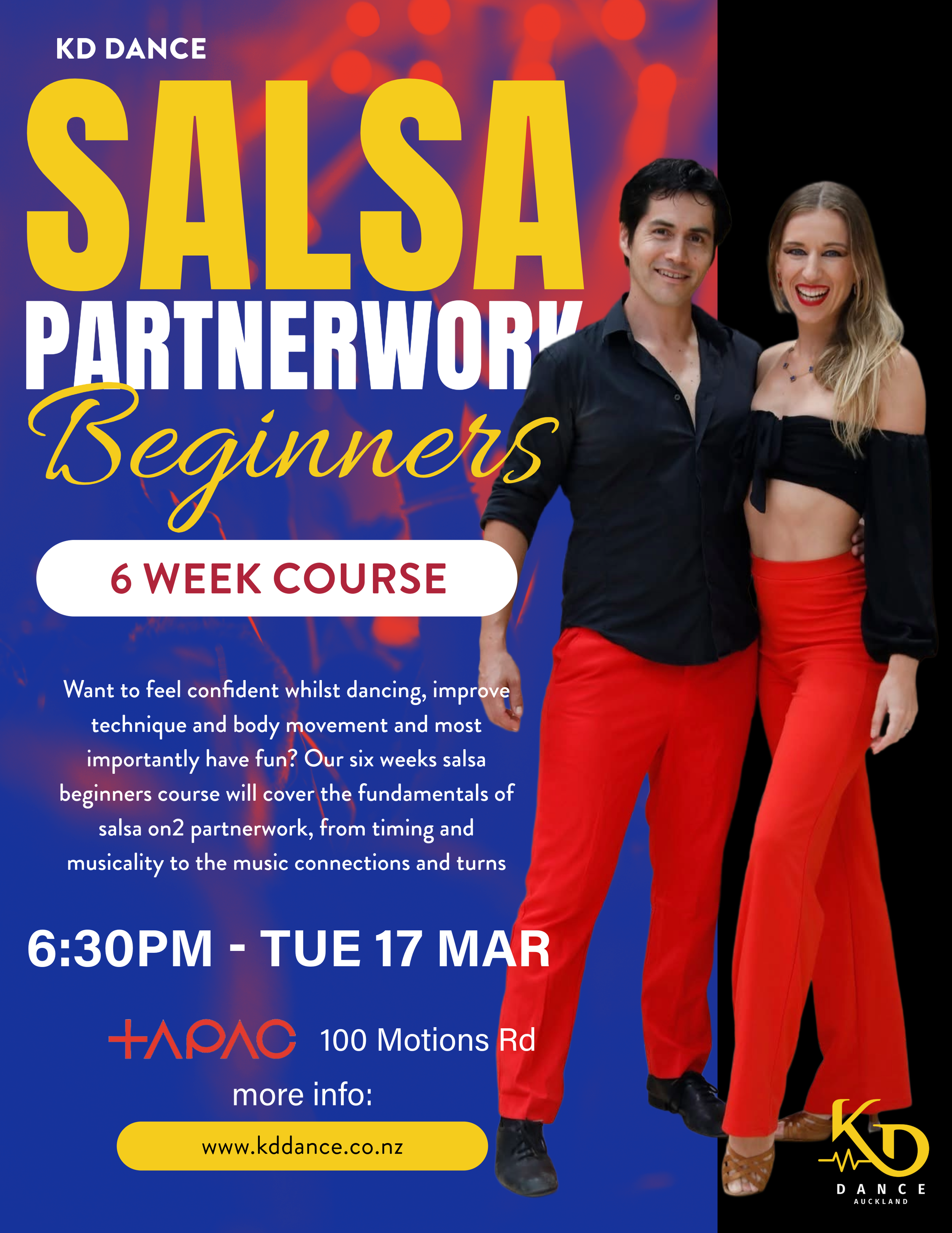 If you already have the fundamentals of salsa on2, have just finished beginners and want to keep improving your technique and repertoire of movements, then the salsa improvers course is for you.This course covers a deeper understanding of the musical patterns and sections, another level of turns (and the right way to lead them), styling and tips for followers, whilst ephasising connections, body movement and posture.
